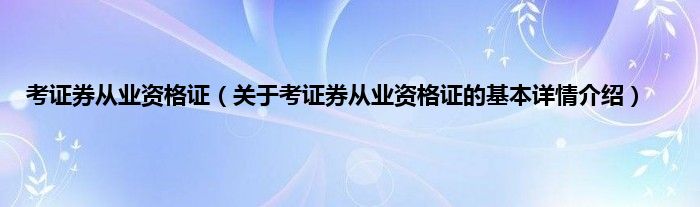 本文关于考证券从业资格证的基本详情介绍就讲解完毕,希望对大家有所帮助。