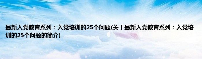 本文关于最新入党教育系列:入党培训的25个问题的简介就讲解完毕,希望对大家有所帮助。