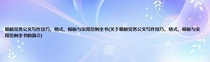 本文关于最新党务公文写作技巧、格式、模板与实用范例全书的简介就讲解完毕,希望对大家有所帮助。