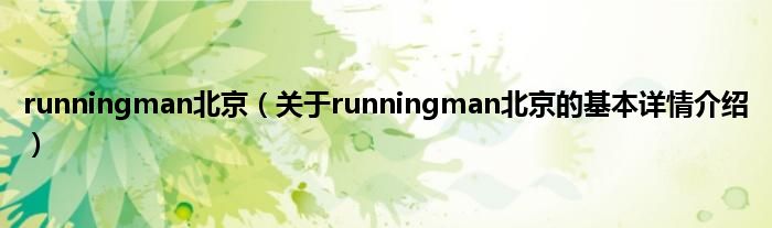 本文关于runningman北京的基本详情介绍就讲解完毕,希望对大家有所帮助。