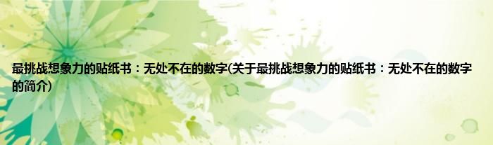 本文关于最挑战想象力的贴纸书:无处不在的数字的简介就讲解完毕,希望对大家有所帮助。