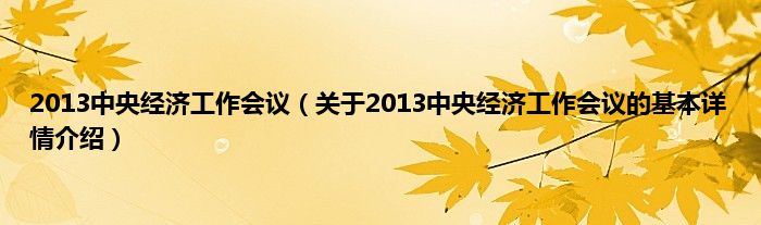 本文关于2013中央经济工作会议的基本详情介绍就讲解完毕,希望对大家有所帮助。