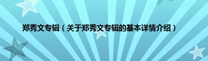 本文关于郑秀文专辑的基本详情介绍就讲解完毕,希望对大家有所帮助。