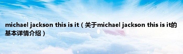 本文关于michael jackson this is it的基本详情介绍就讲解完毕,希望对大家有所帮助。