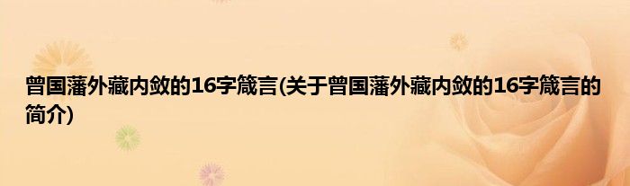 本文关于曾国藩外藏内敛的16字箴言的简介就讲解完毕,希望对大家有所帮助。