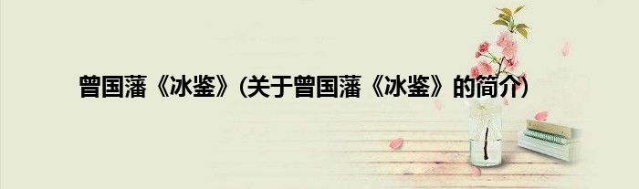 本文关于曾国藩《冰鉴》的简介就讲解完毕,希望对大家有所帮助。