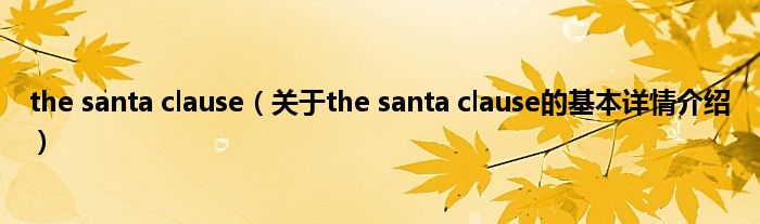 本文关于the santa clause的基本详情介绍就讲解完毕,希望对大家有所帮助。