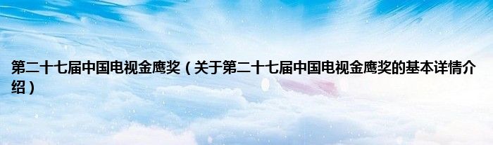 本文关于第二十七届中国电视金鹰奖的基本详情介绍就讲解完毕,希望对大家有所帮助。
