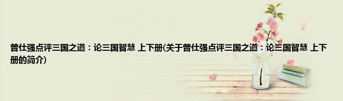 本文关于曾仕强点评三国之道:论三国智慧 上下册的简介就讲解完毕,希望对大家有所帮助。