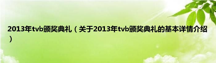 本文关于2013年tvb颁奖典礼的基本详情介绍就讲解完毕,希望对大家有所帮助。