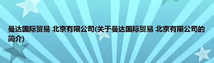 本文关于曼达国际贸易 北京有限公司的简介就讲解完毕,希望对大家有所帮助。