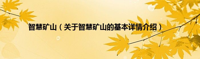 本文关于智慧矿山的基本详情介绍就讲解完毕,希望对大家有所帮助。