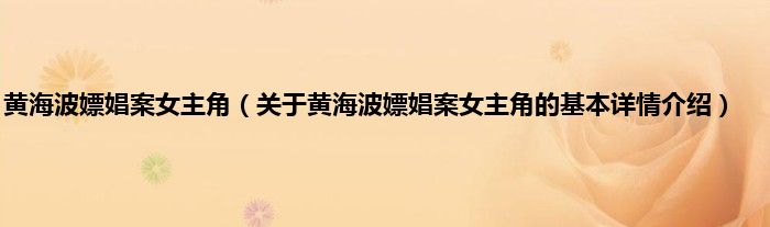 本文关于黄海波嫖娼案女主角的基本详情介绍就讲解完毕,希望对大家有所帮助。