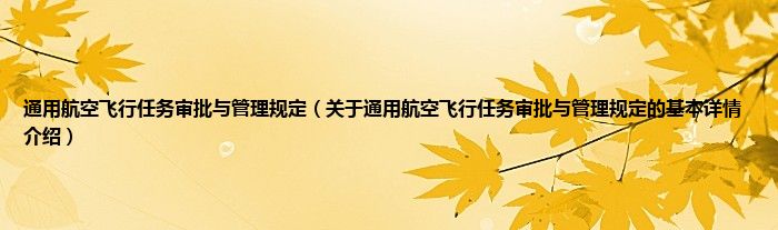 本文关于通用航空飞行任务审批与管理规定的基本详情介绍就讲解完毕,希望对大家有所帮助。