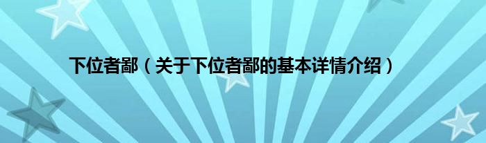 下位者鄙(关于下位者鄙的基本详情介绍)