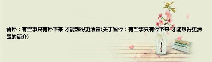 本文关于暂停:有些事只有停下来,才能想得更清楚的简介就讲解完毕,希望对大家有所帮助。