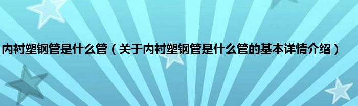 本文关于内衬塑钢管是什么管的基本详情介绍就讲解完毕,希望对大家有所帮助。