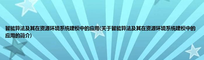 智能算法及其在资源环境系统建模中的应用(关于智能算法及其在资源环境系统建模中的应用的简介)