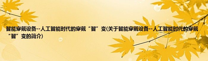 本文关于智能穿戴设备--人工智能时代的穿戴“智”变的简介就讲解完毕,希望对大家有所帮助。