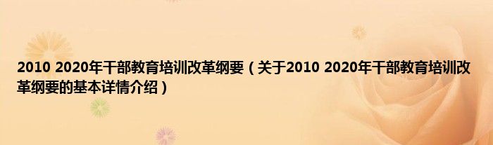 2010 2020年干部教育培训改革纲要(关于2010 2020年干部教育培训改革纲要的基本详情介绍)