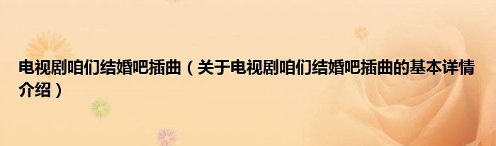 本文关于电视剧咱们结婚吧插曲的基本详情介绍就讲解完毕,希望对大家有所帮助。