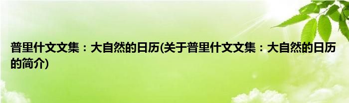 本文关于普里什文文集:大自然的日历的简介就讲解完毕,希望对大家有所帮助。