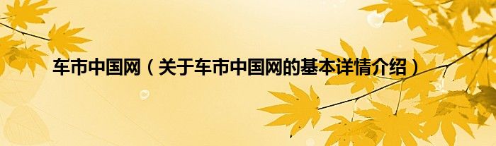 本文关于车市中国网的基本详情介绍就讲解完毕,希望对大家有所帮助。