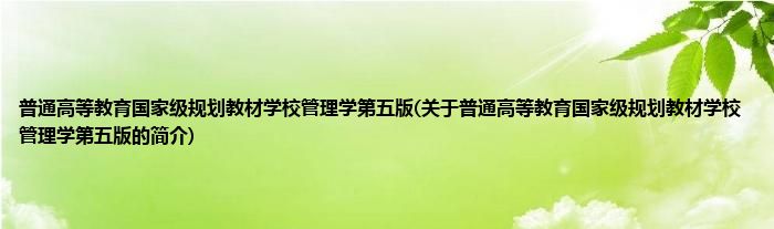 大家好,普通高等教育国家级规划教材学校管理学第五版,关于普通高等教育国家级规划教材学校管理学第五版的简介很多人还不知道,现在让我们一起来看看吧!