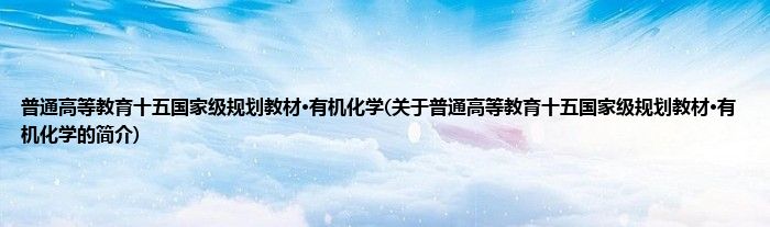 本文关于普通高等教育十五国家级规划教材·有机化学的简介就讲解完毕,希望对大家有所帮助。