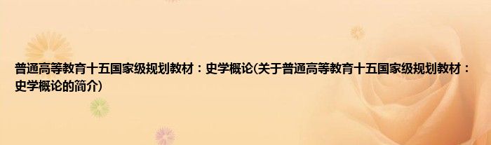 大家好,普通高等教育十五国家级规划教材:史学概论,关于普通高等教育十五国家级规划教材:史学概论的简介很多人还不知道,现在让我们一起来看看吧!