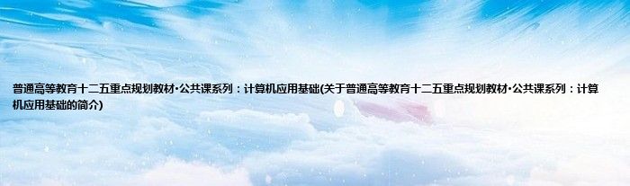 大家好,普通高等教育十二五重点规划教材·公共课系列:计算机应用基础,关于普通高等教育十二五重点规划教材·公共课系列:计算机应用基础的简介很多人还不知道,现在让我们一起来看看吧!
