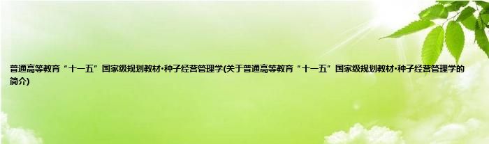 1、 《普通高等教育"十一五"国家级规划教材·种子经营管理学》是普通高等教育“十一五”国家级规划教材。
