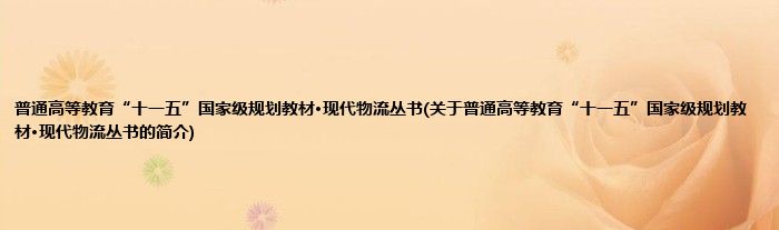 本文关于普通高等教育“十一五”国家级规划教材·现代物流丛书的简介就讲解完毕,希望对大家有所帮助。