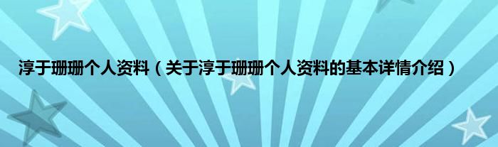 本文关于淳于珊珊个人资料的基本详情介绍就讲解完毕,希望对大家有所帮助。