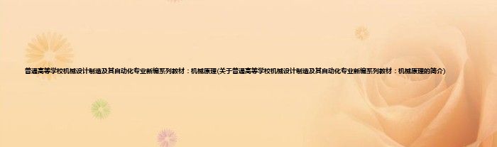 本文关于普通高等学校机械设计制造及其自动化专业新编系列教材:机械原理的简介就讲解完毕,希望对大家有所帮助。