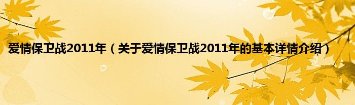 本文关于爱情保卫战2011年的基本详情介绍就讲解完毕,希望对大家有所帮助。