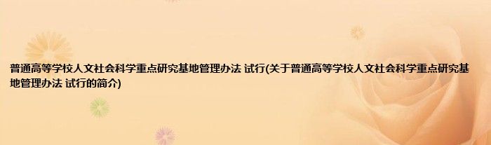 大家好,普通高等学校人文社会科学重点研究基地管理办法 试行,关于普通高等学校人文社会科学重点研究基地管理办法 试行的简介很多人还不知道,现在让我们一起来看看吧!