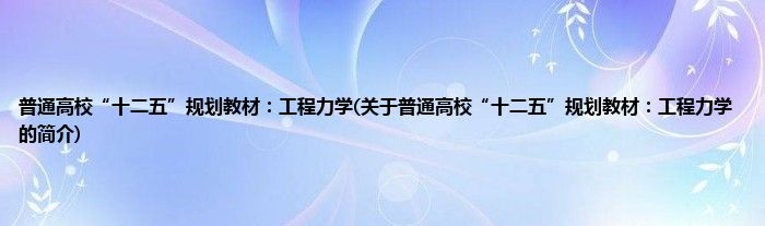 本文关于普通高校“十二五”规划教材:工程力学的简介就讲解完毕,希望对大家有所帮助。