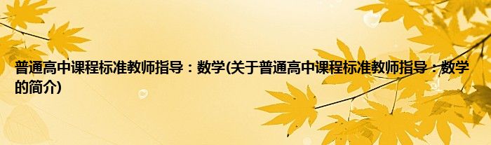 本文关于普通高中课程标准教师指导:数学的简介就讲解完毕,希望对大家有所帮助。