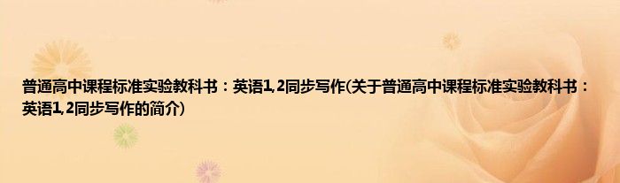 1、 《普通高中课程标准实验教科书英语1,2同步写作》是2004年人民教育出版社出版的图书。