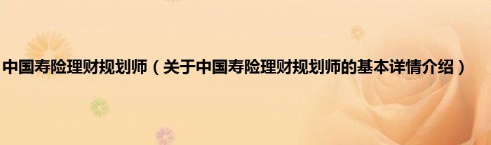 本文关于中国寿险理财规划师的基本详情介绍就讲解完毕,希望对大家有所帮助。