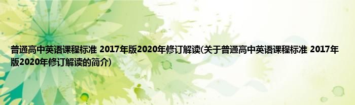 本文关于普通高中英语课程标准 2017年版2020年修订解读的简介就讲解完毕,希望对大家有所帮助。