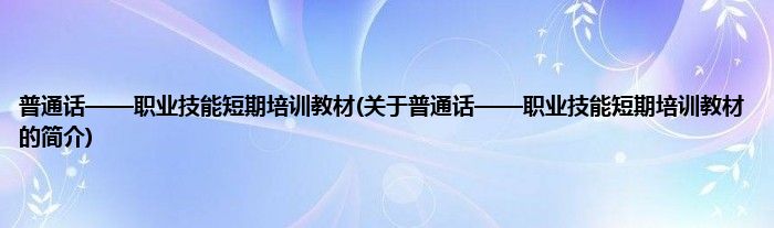 本文关于普通话——职业技能短期培训教材的简介就讲解完毕,希望对大家有所帮助。