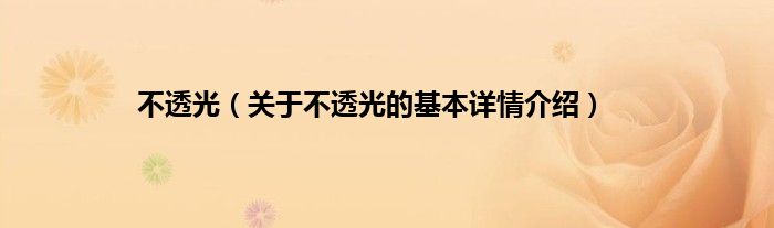 本文关于不透光的基本详情介绍就讲解完毕,希望对大家有所帮助。