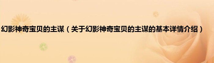 幻影神奇宝贝的主谋(关于幻影神奇宝贝的主谋的基本详情介绍)