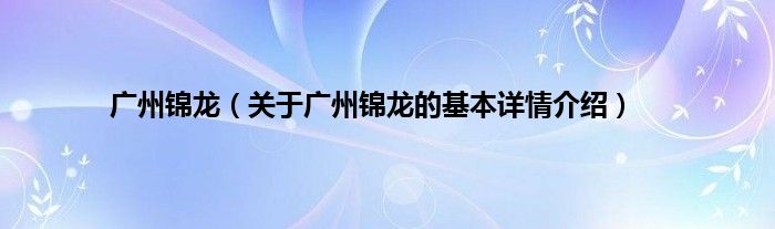 本文关于广州锦龙的基本详情介绍就讲解完毕,希望对大家有所帮助。