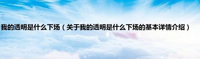 本文关于我的透明是什么下场的基本详情介绍就讲解完毕,希望对大家有所帮助。
