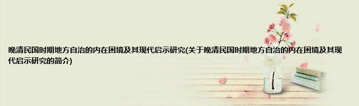 大家好,晚清民国时期地方自治的内在困境及其现代启示研究,关于晚清民国时期地方自治的内在困境及其现代启示研究的简介很多人还不知道,现在让我们一起来看看吧!