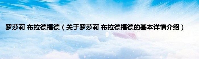 本文关于罗莎莉 布拉德福德的基本详情介绍就讲解完毕,希望对大家有所帮助。