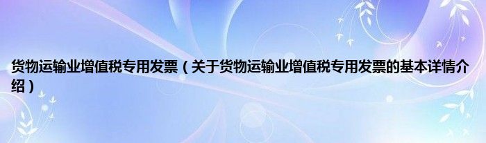 本文关于货物运输业增值税专用发票的基本详情介绍就讲解完毕,希望对大家有所帮助。